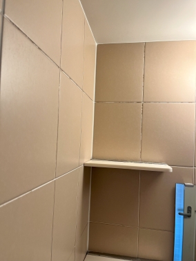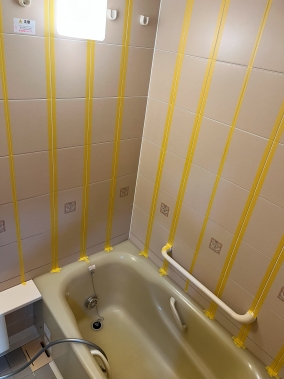 ●目地に石鹸カスやカビ等の汚れが無い状態で施工しなければならない為、事前に目地のクリーニングが必要となります。